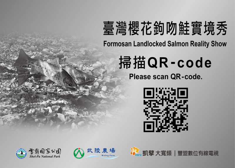 雪霸國家公園管理處(以下簡稱雪管處)與凱擘豐盟有線電視合作,於七家灣溪觀魚臺架設水中攝影機,遊客掃QR Code立即可以看見臺灣櫻花鉤吻鮭在水下的動態,一窺國寶魚的生態。