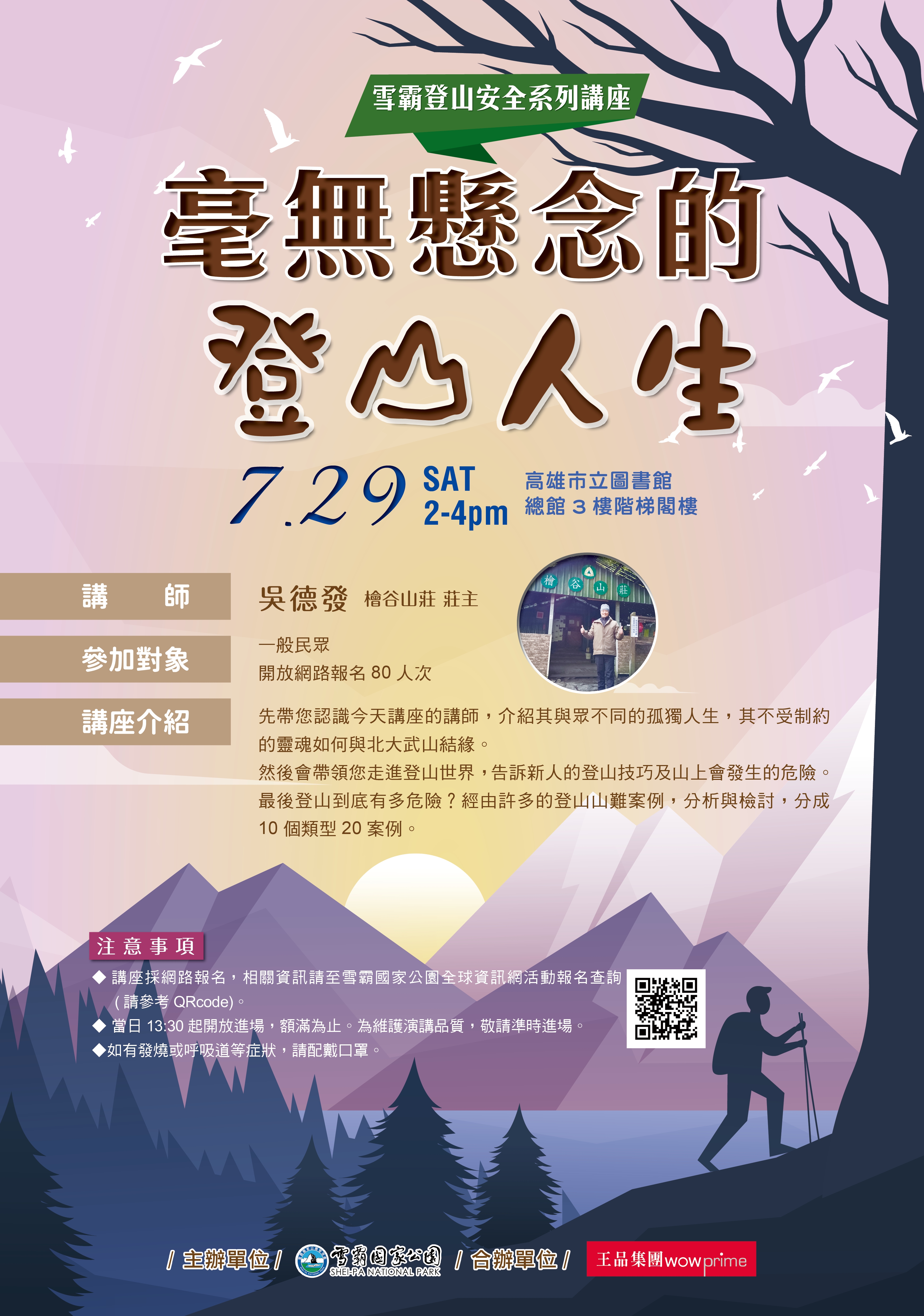 112年雪霸登山安全系列講座第2場次【毫無懸念的登山人生】將於7/19上午10:00開始報名~參加即有機會抽到王品集團商品卡500元喔!